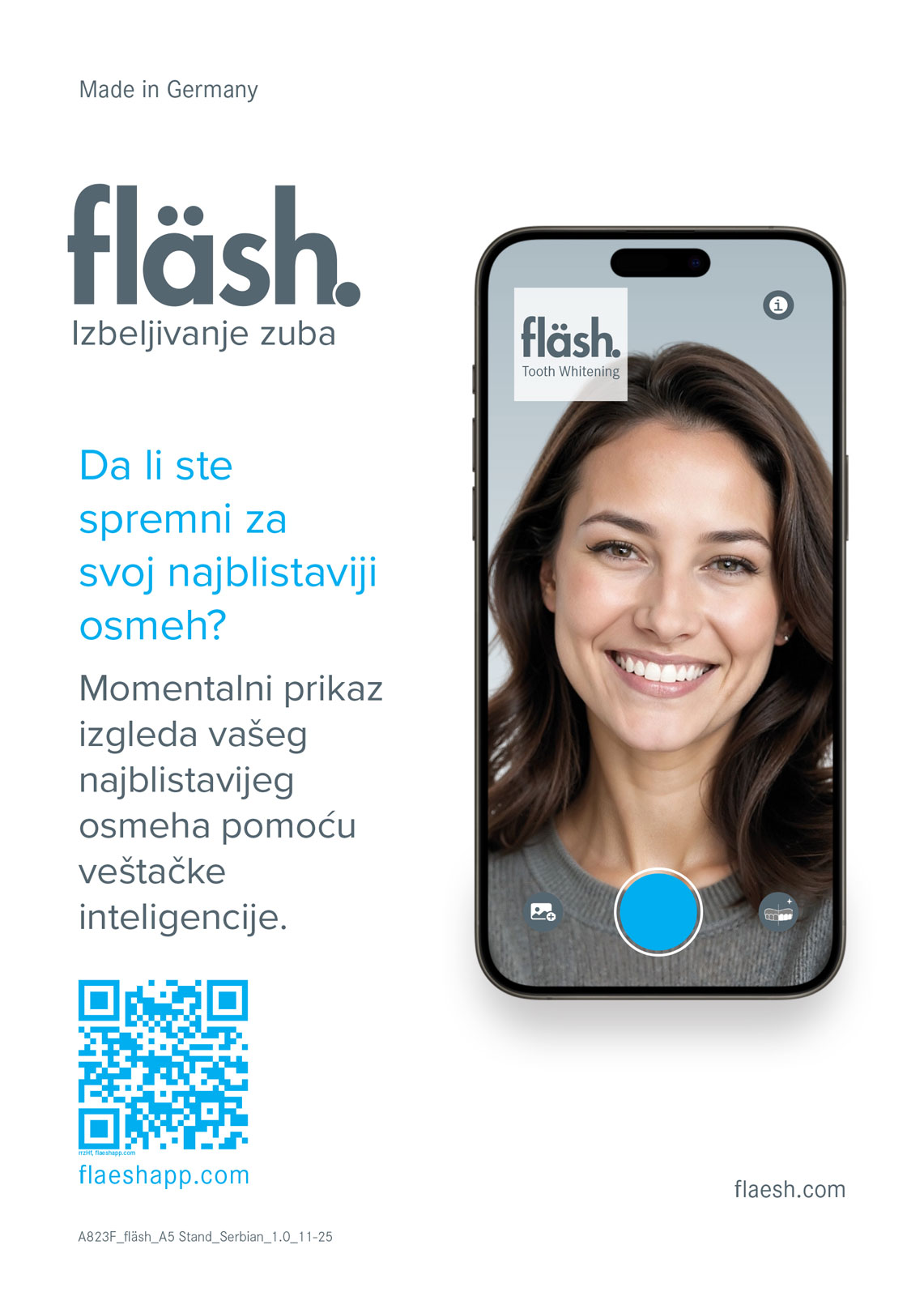 Bilo da aplikaciju koristi tim u ordinaciji ili sami pacijenti, izbeljivanje zuba je sada bukvalno na dohvat ruke. Posebno dizajnirani Fläsh promotivni stalci sa QR kodovima omogućavaju pacijentima trenutni pristup aplikaciji — pretvarajući vreme čekanja u korisno informisanje i veću svest o terapiji.