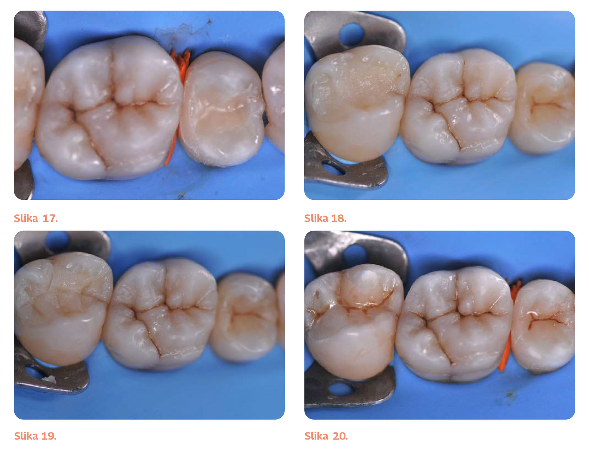 Slika 20. Direktne restauracije su odrađene korišćenjem jedne jedine nijanse SimpliShade Bulk-fill kompozita, uz dodatak braon efekta u fisurama i jamicama.