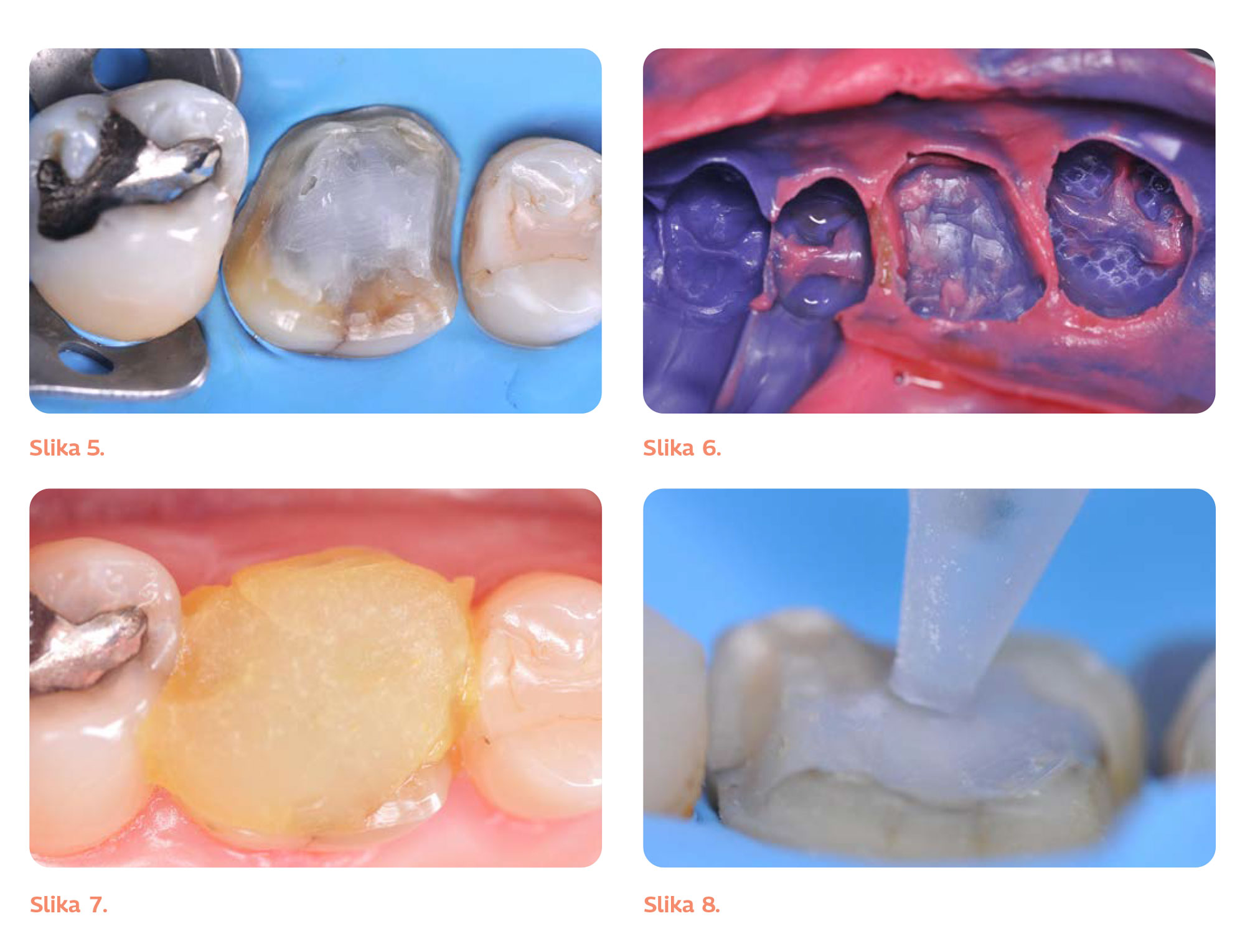 Slika 7. Kada je indirektna restaurativna nadoknada bila gotova, pacijent se ponovo javio radi cementiranja nadoknade na prvom molaru, kao i za izradu direktnih restauracija na preostala dva zuba.