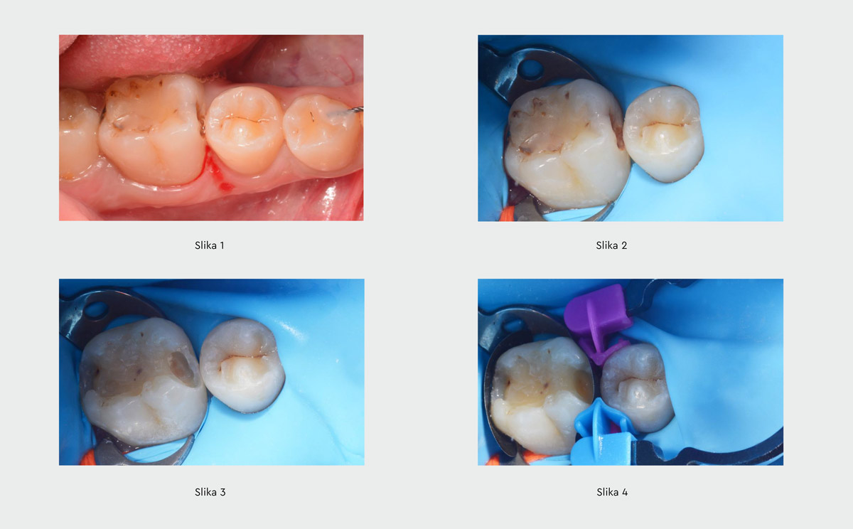 Mladi pacijent je upućen na pregled zbog zamene starog kompozitnog ispuna i prisustva karijesne lezije na aproksimalnoj površini molara 36. Na narednim slikama prikazan je postupak direktne kompozitne restauracije korak po korak, korišćenjem seta myQuickmat Forte (Polydentia) u kombinaciji sa nastavcima myTines Small i myTines Medium (Polydentia).