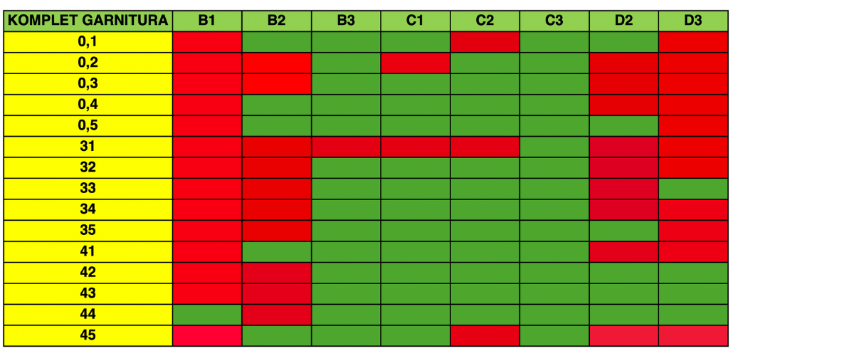 Ivoclar kompletna garnitura zubaSve bojeDostupne veličine i oblike proveriti u tabeli: CRVENO - NIJE DOSTUPNO, ZELENO - DOSTUPNO